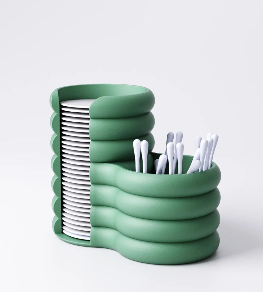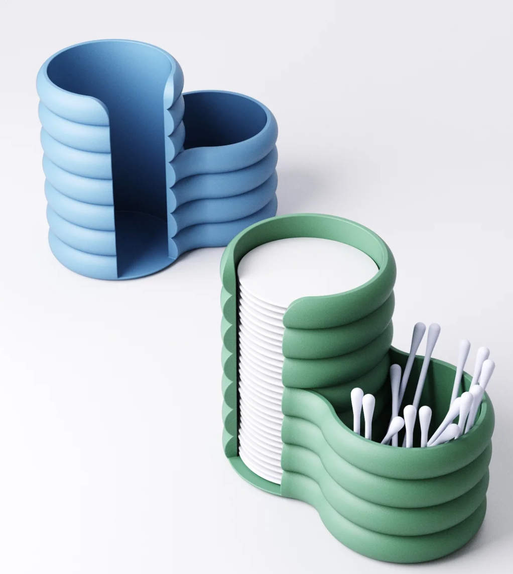 3D baskı teknolojisiyle üretilen bu modern kulak çubuğu ve makyaj pamuğu organizeri, hem minimal hem de fonksiyonel bir tasarıma sahip.